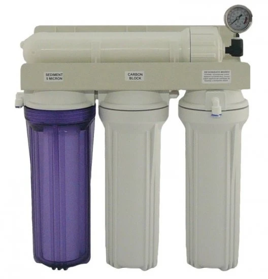Jednotka poskytuje bezpečnou, čistou vodu za použití technologie reverzní osmózy. Srdce jednotky membrána TFC je vyrobena v USA nejpokročilejší technologií a výrobními postupy. Pouzdra filtrů (10“) polypropylén, dvojité těsnění pro větší spolehlivost. Jednotka je vybavena manometrem, který monitoruje pracovní tlak systému (min 45psi), důležitý pro správný chod jednotky, pomáhá také určit potřebu výměny mech. předfiltrů.
