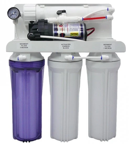 Jednotka poskytuje bezpečnou, čistou vodu za použití technologie reverzní osmózy. Srdce jednotky membrána TFC je vyrobena v USA nejpokročilejší technologií a výrobními postupy. Pouzdra filtrů (10“) polypropylén, dvojité těsnění pro větší spolehlivost. Jednotka je vybavena manometrem, který monitoruje pracovní tlak systému (min 45psi), důležitý pro správný chod jednotky, pomáhá také určit potřebu výměny mech. předfiltrů.